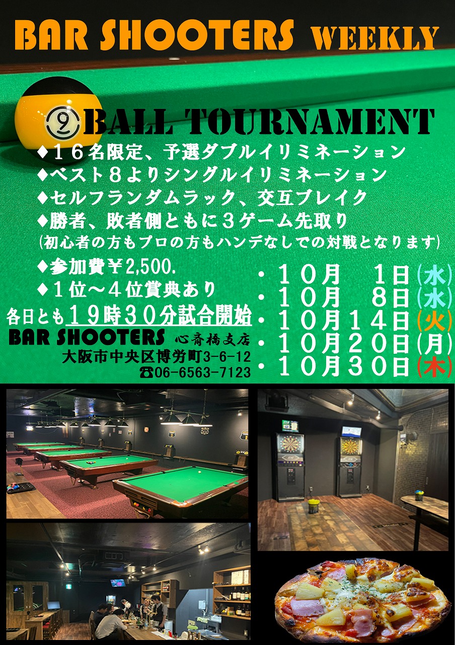 心斎橋支店で2025年10月に開催されるウイークリー・トーナメント日程です。